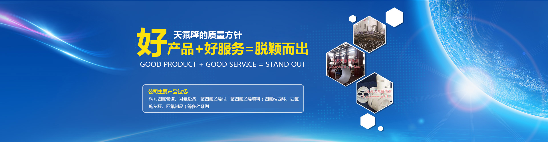 江蘇天氟隆防腐設備有限公司座落在具有東方濕地之稱、丹頂鶴與麋鹿的故鄉鹽城,是以生產大、中型襯聚四氟乙烯(下簡稱四氟)管道、設備、閥門,聚四氟乙烯管材,四氟填料(四氟鮑爾環、四氟拉西環),集研發、生產、銷售為一體的企業。公司總部位于江蘇省鹽城市伍佑工業園區,占地約10200平方米,下轄1個全資子公司,位于鹽城市新204國道與鹽徐高速交界處
